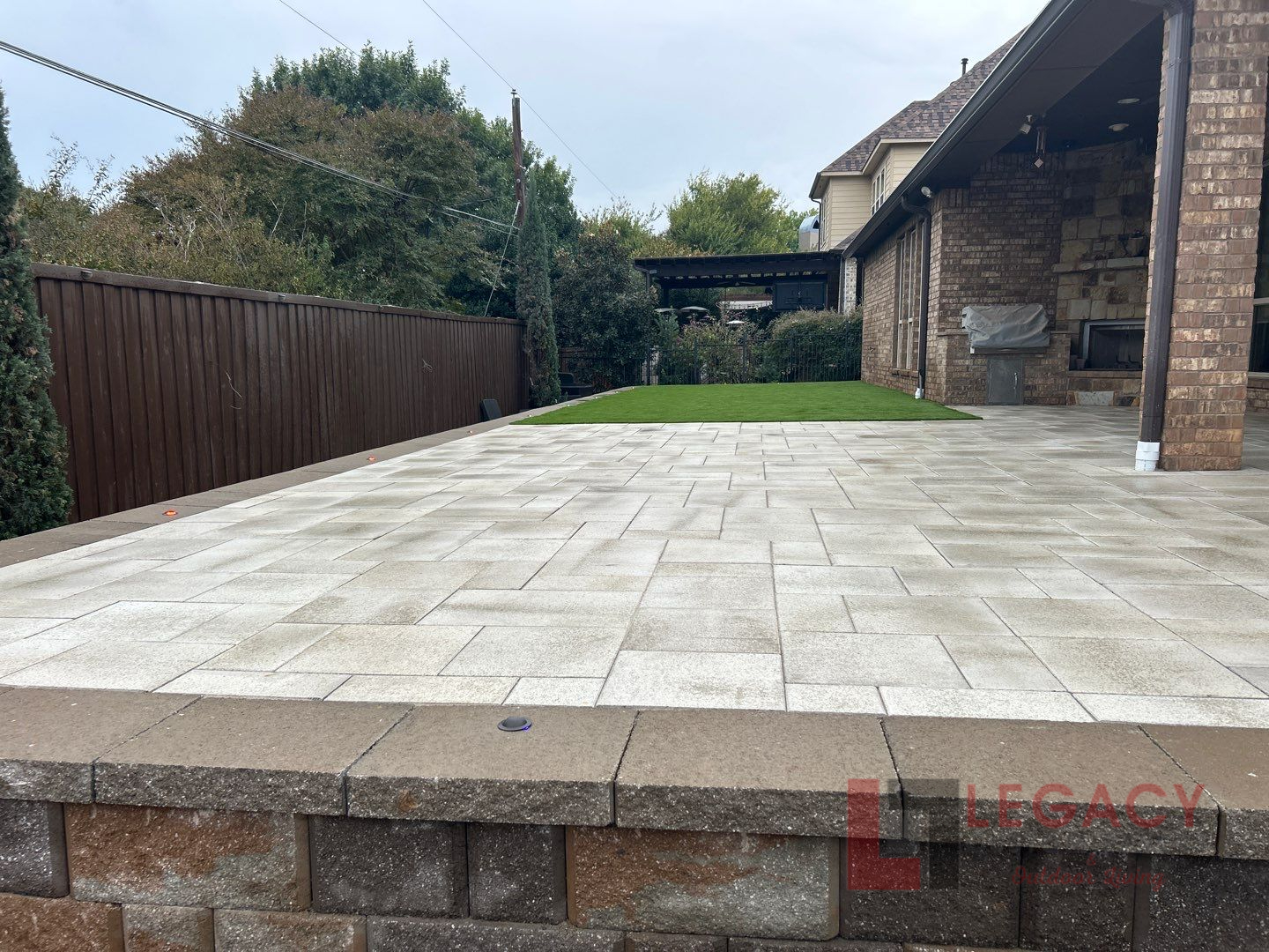 Custom Paver Patio/Pool deck/Driveway(had BB court with pavers) ; We installed the seat wall and synthetic grass.
